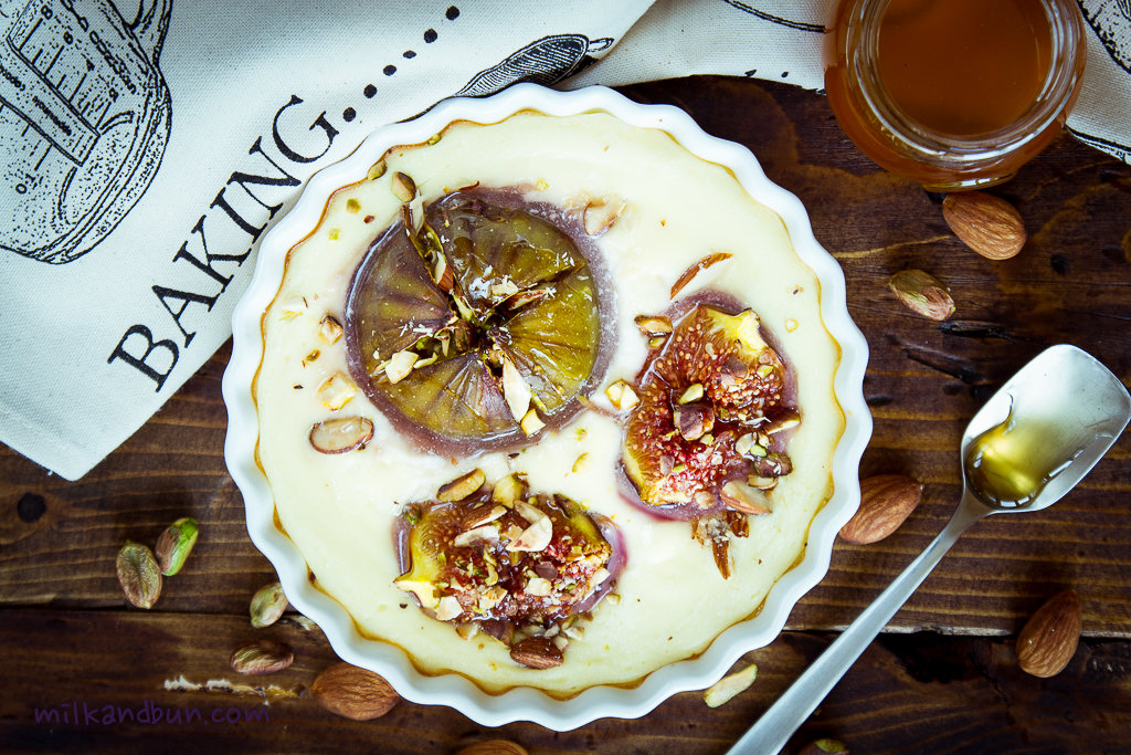 - Divide the ricotta cream between two baking dishes, or pour into one. Arrange figs on top. Sprinkle with nuts.