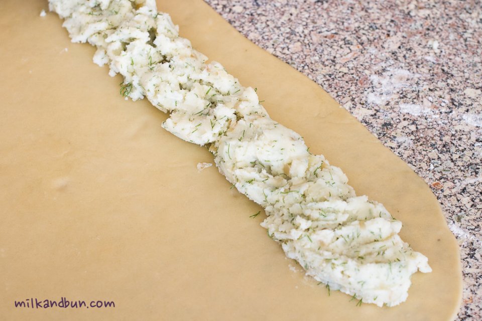 Spread evenly filling on the pastry edge