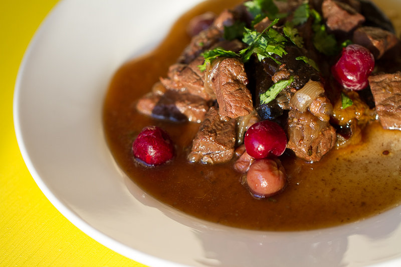 - Add prunes and cherries (no need to defrost), check the seasoning and return again to the oven for 30 minutes.