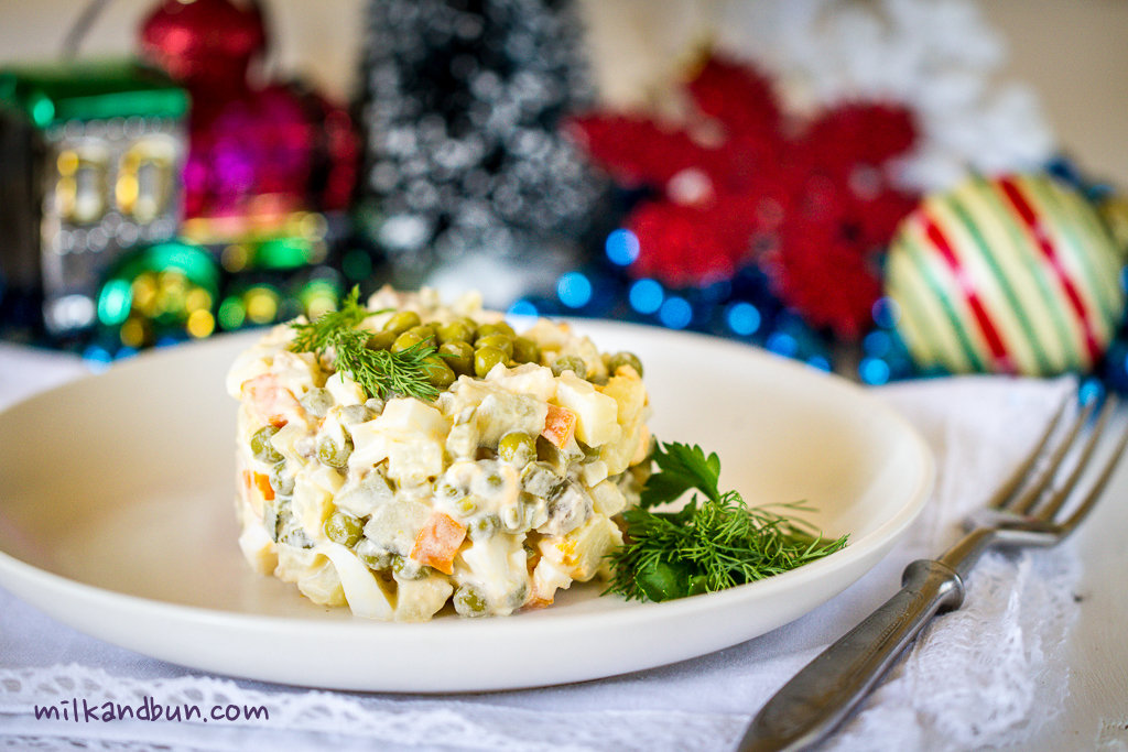 This salad is a traditional dish in Russian cuisine, and most of the time it is associated with New Year celebration, when it’s always served on a festive table along with another popular salad – “shuba”.