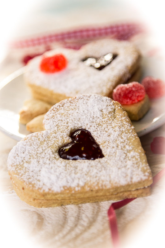 The assembled cookies can be store in an container (in the refrigerator), or I keep them without jam, in a jar, and assemble when it’s needed 🙂