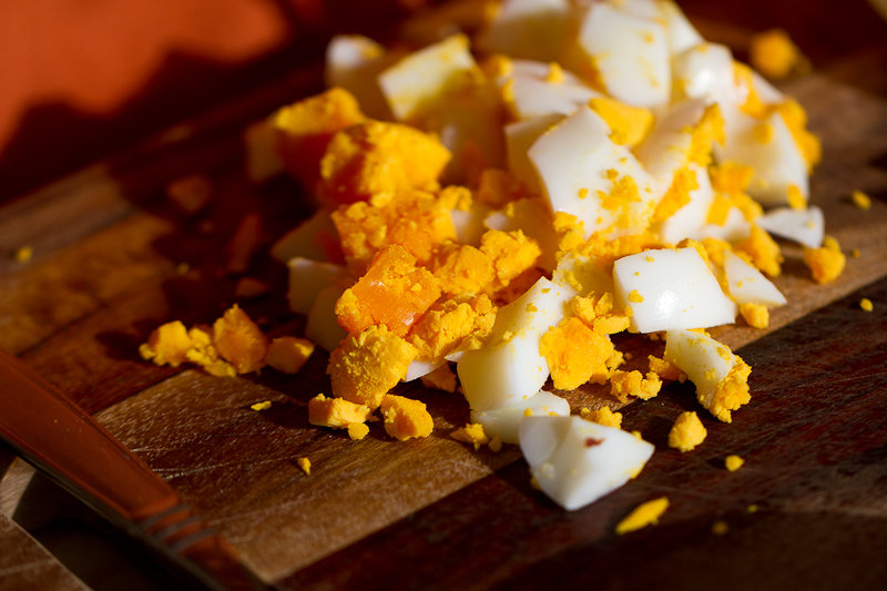 - Whisk together eggs and sugar until light cream texture. Add melted butter, salt, lemon zest, vanilla extract and beat in.